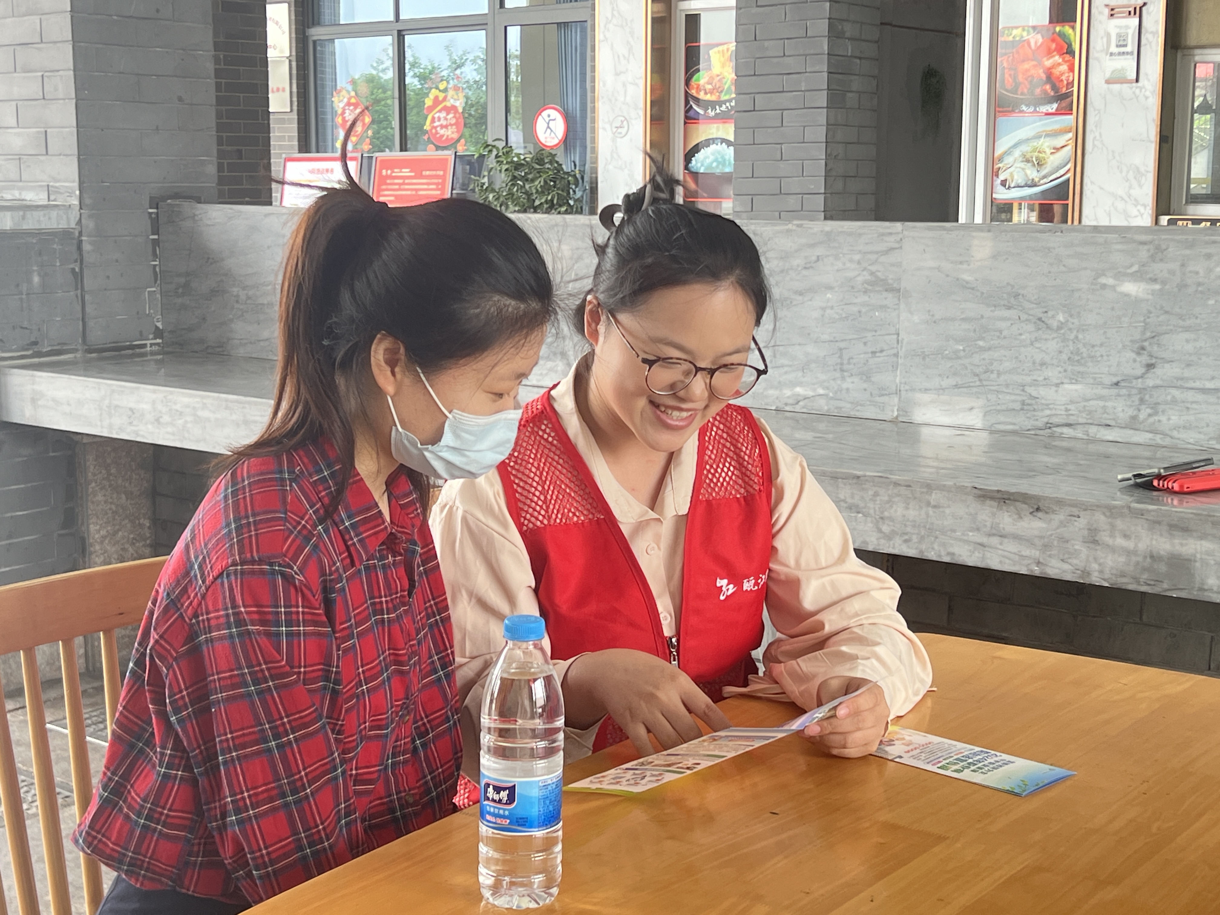 为了让学习成果更好地转化为实际行动,经营公司与房开公司的青年志愿者们还带领团员青年们走进陶山服务区,开展了一系列温暖人心的志愿服务活动。志愿者们热情地为司乘人员提供指引,帮助他们找到休息场所、卫生间和开水间等。同时,志愿者们还向司乘人员介绍了“畅美高速·青春驿站”的相关服务内容,并发放了安全知识宣传手册,仔细讲解防汛防台等安全知识,让司乘人员在旅途中感受到了来自青年志愿者的温暖与关怀。