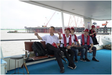 6月26日,国家开发银行省分行副行长倪贤孟带队深入瓯江北口大桥工地现场,就瓯江北口大桥高速公路部分项目贷款做实地考察。集团董事长秦肖、总经理南品仁,瓯江口公司郑锋利陪同。