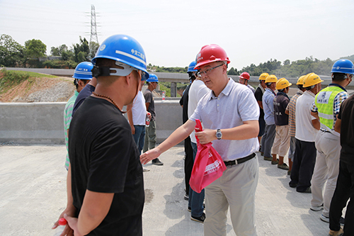 7月31日,市交投集团董事长秦肖、副总经理、总工程师周列茅赴甬台温复线南塘至黄华段工程,为忙碌在建设一线的职工们送来清凉,使职工们感受到了组织关怀,激发了大家鏖战酷暑,勇斗高温的工作热情。高投公司夏理巧等陪同。