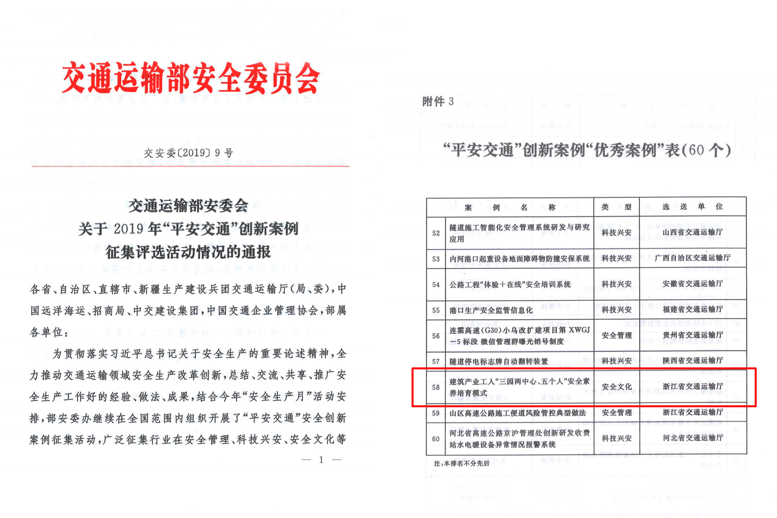 近日,温州瓯江北口大桥项目的建筑产业工人“三园两中心、五个人”安全素养培育模式,喜获交通运输部2019年“平安交通”创新案例“优秀案例”。