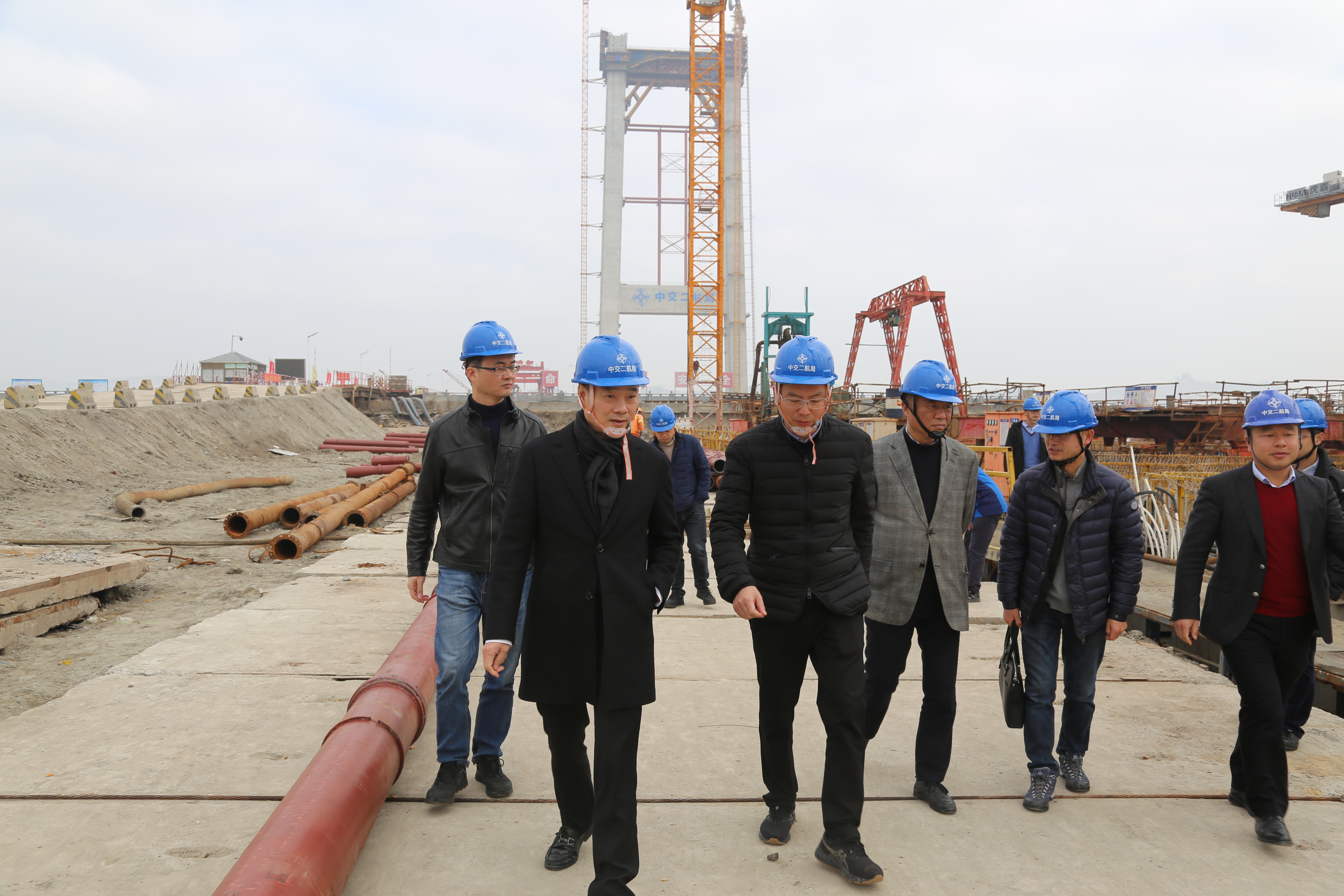 1月22日上午,市交发集团总经理南品仁、总经济师王道川、副总经理、总工程师郑锋利携集团安全部、建管部、资管部、财管中心、工会负责人来到瓯江北口大桥项目一线,开展春节节前安全生产检查及节日慰问。
