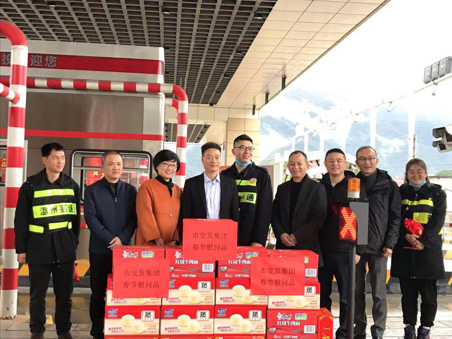除夕,朱三平一行赴温州东、七里港等收费站进行慰问。每到一处,朱三平亲切地向职工致以新年祝福,并详细询问他们的身体状况和工作情况,感谢他们在全社会积极对抗肺炎疫情的环境下坚守一线,保障集团下辖高速公路安全、有序地运营。