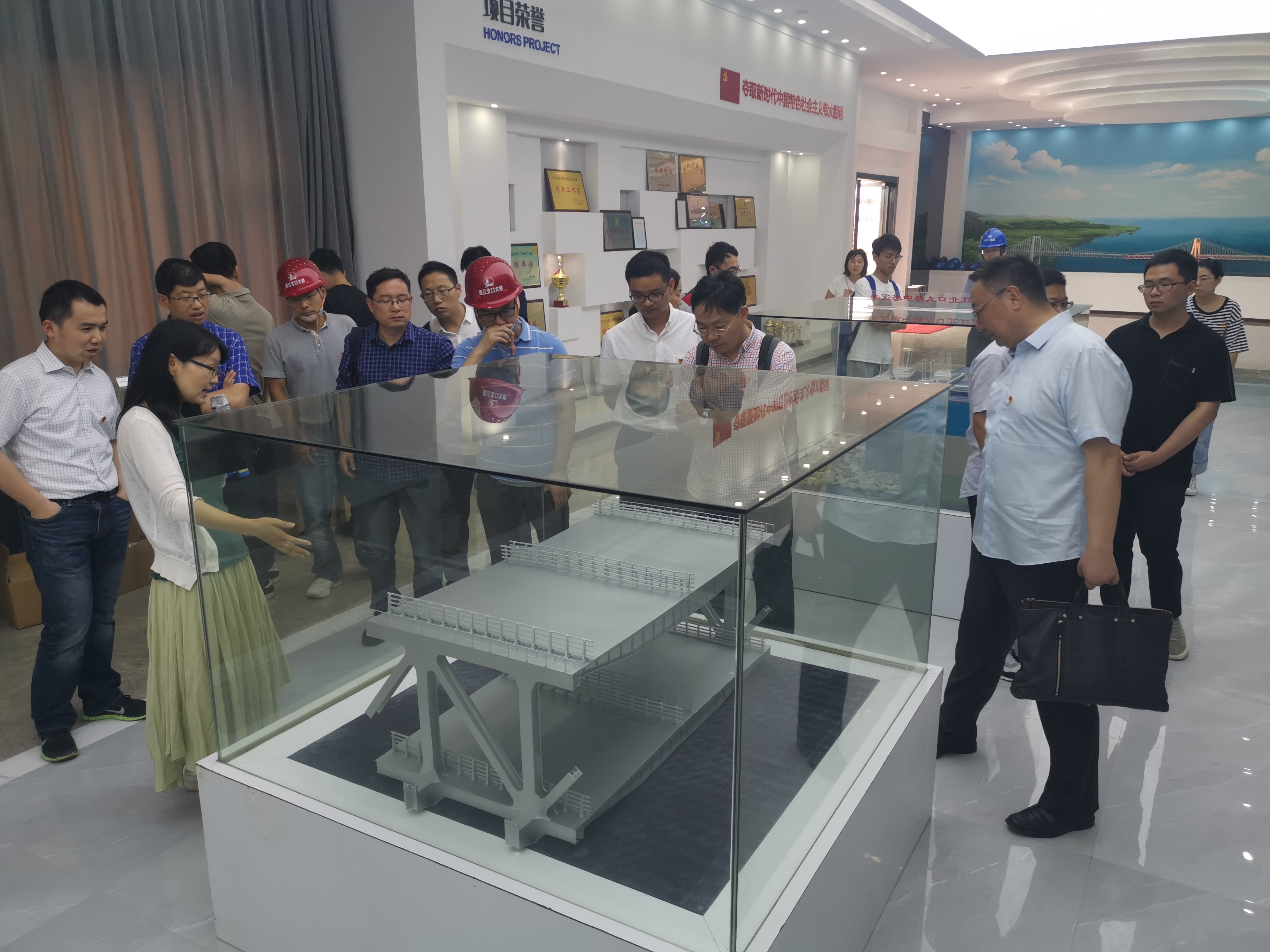 一行人还参观了项目党建服务中心,并在讲解员的引领下参观桥梁建设馆。随后在项目会议室召开座谈会,就项目全寿命周期应用的BIM技术及自主开发的BIM信息化系统进行沟通交流。