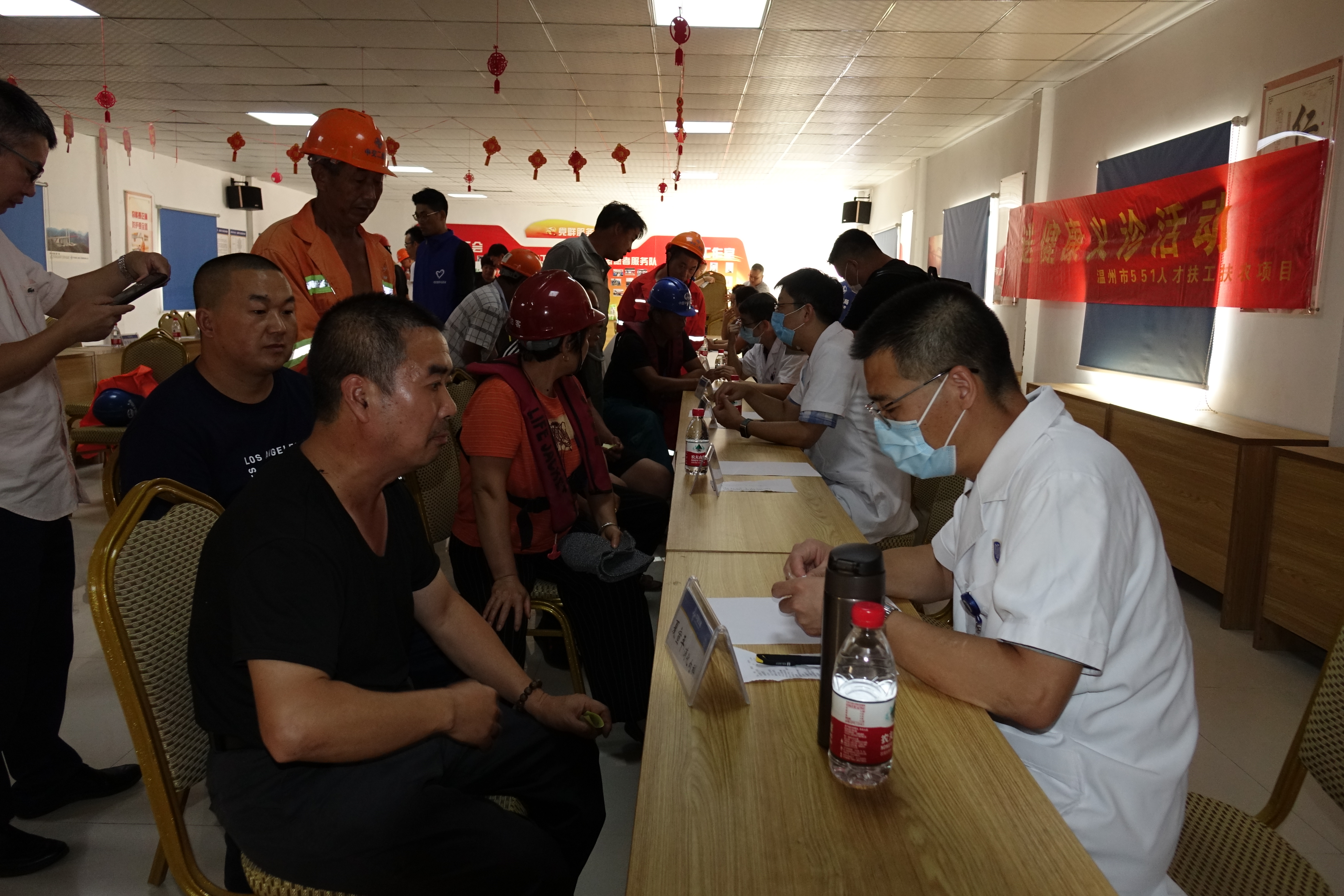 8月16日上午,第三期“服务工程一线工人,助力国家级重点桥梁建设--2020年民革党员健康义诊及法律咨询活动”在温州瓯江北口大桥如期而至。市政协副主席、民革温州委员会主委诸葛启钏带领多位从事医疗、法律专业的民革党员来到北口大桥产业工人学校,为100余位工程建设者进行现场义诊及法律咨询服务。集团总经理南品仁,瓯江口大桥公司潘济等相关人员出席活动。