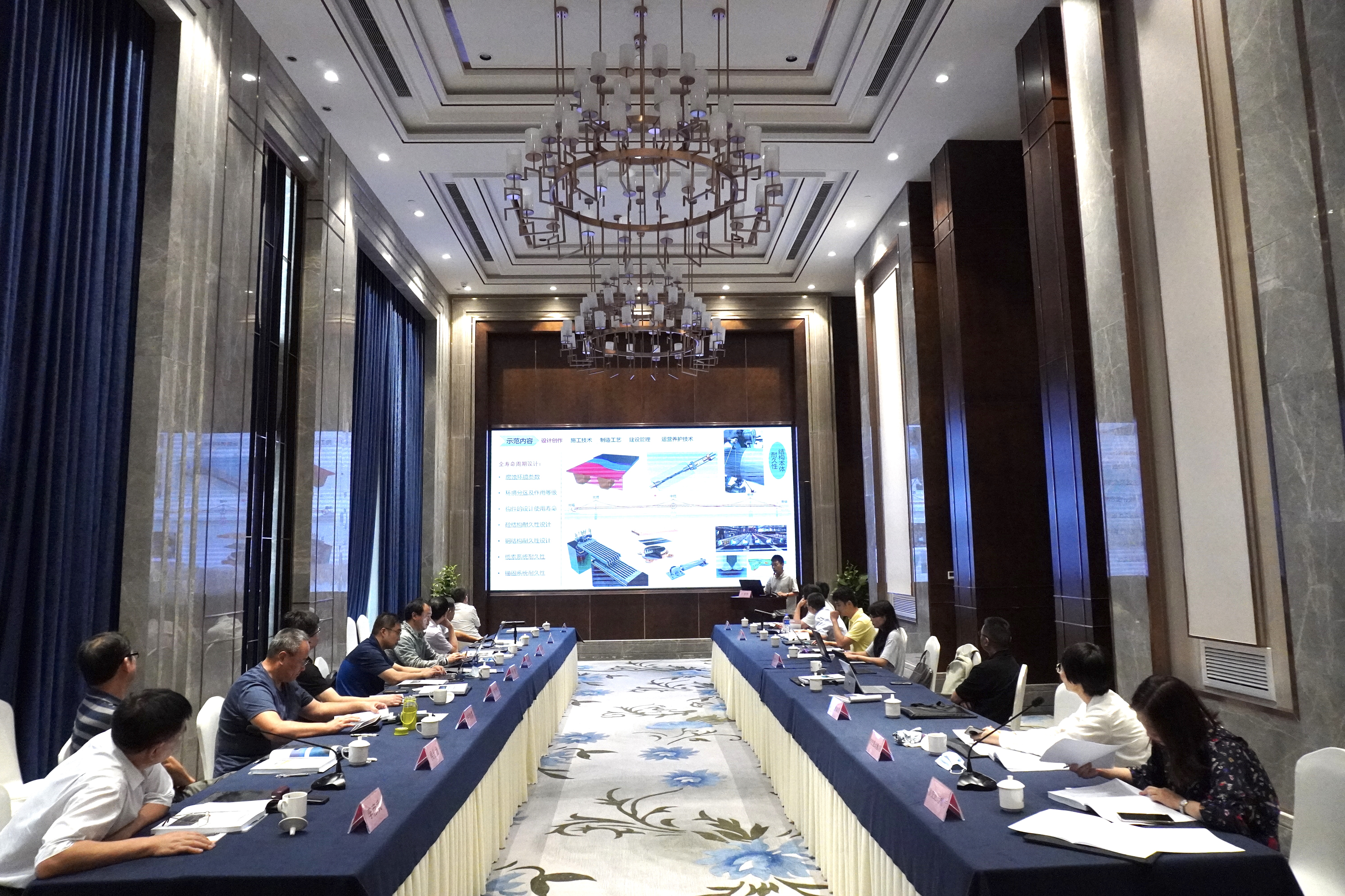 会上,示范工程负责人潘济汇报了示范内容及要点。与会专家听取了该方案的汇报,并审阅了文件及资料,一致认为温州瓯江北口大桥科技示范工程紧扣“跨海多塔连跨悬索桥建造技术”主题,结合了依托工程实际及相关科研基础,围绕建造技术特点开展理论研究、技术进步、装备提升,进行科技创新、集成和应用等示范工作,示范目标明确,同意该实施方案,但仍需进一步突出示范重点,体现引领示范作用,并完善技术指标及保障体系,确保示范项目落地实施。