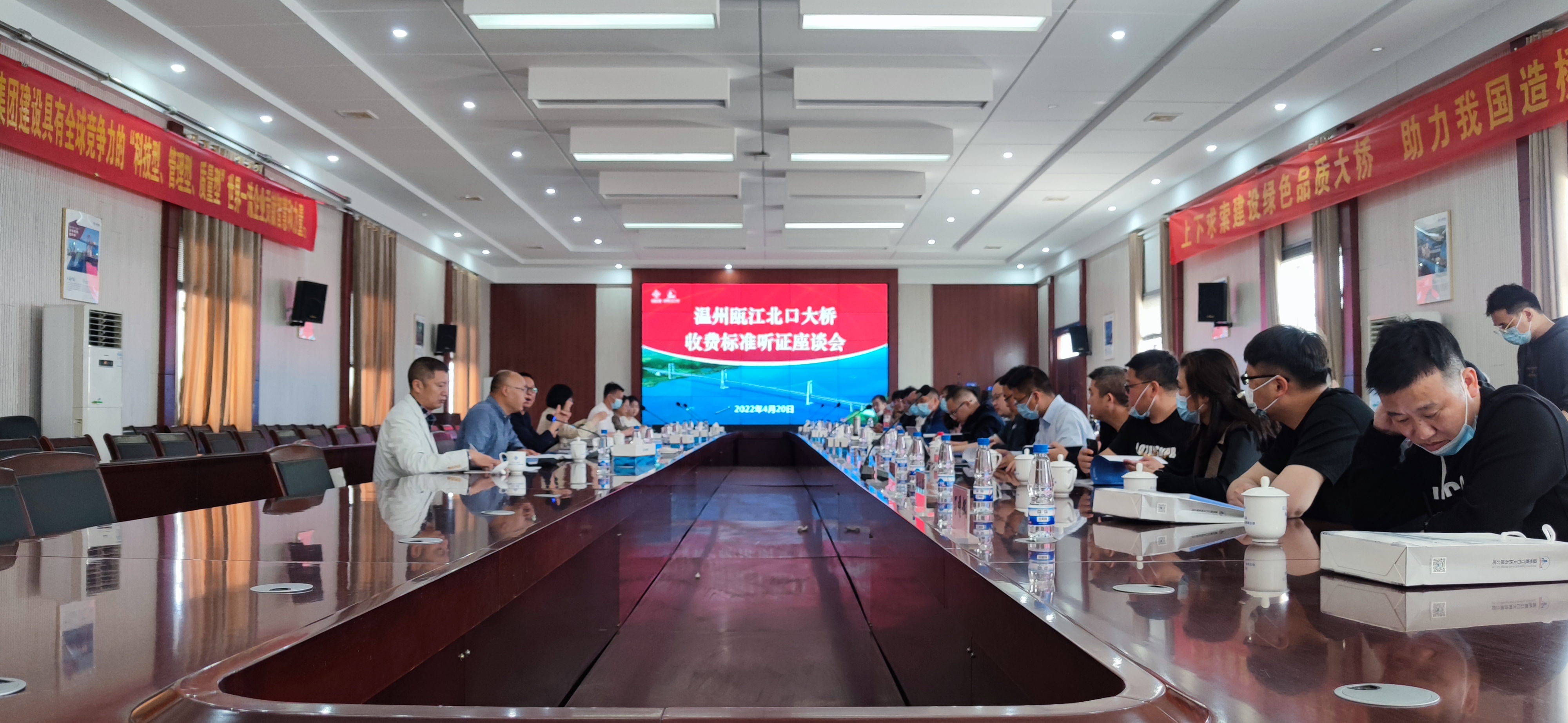 2022年4月20日上午,温州市发改委组织召开温州瓯江北口大桥项目收费标准听证座谈会,市发改委副主任邵为平、市交通运输局副局长王辉球、市交发集团总经理南品仁以及大桥两岸24位社会各界市民代表等出席会议。