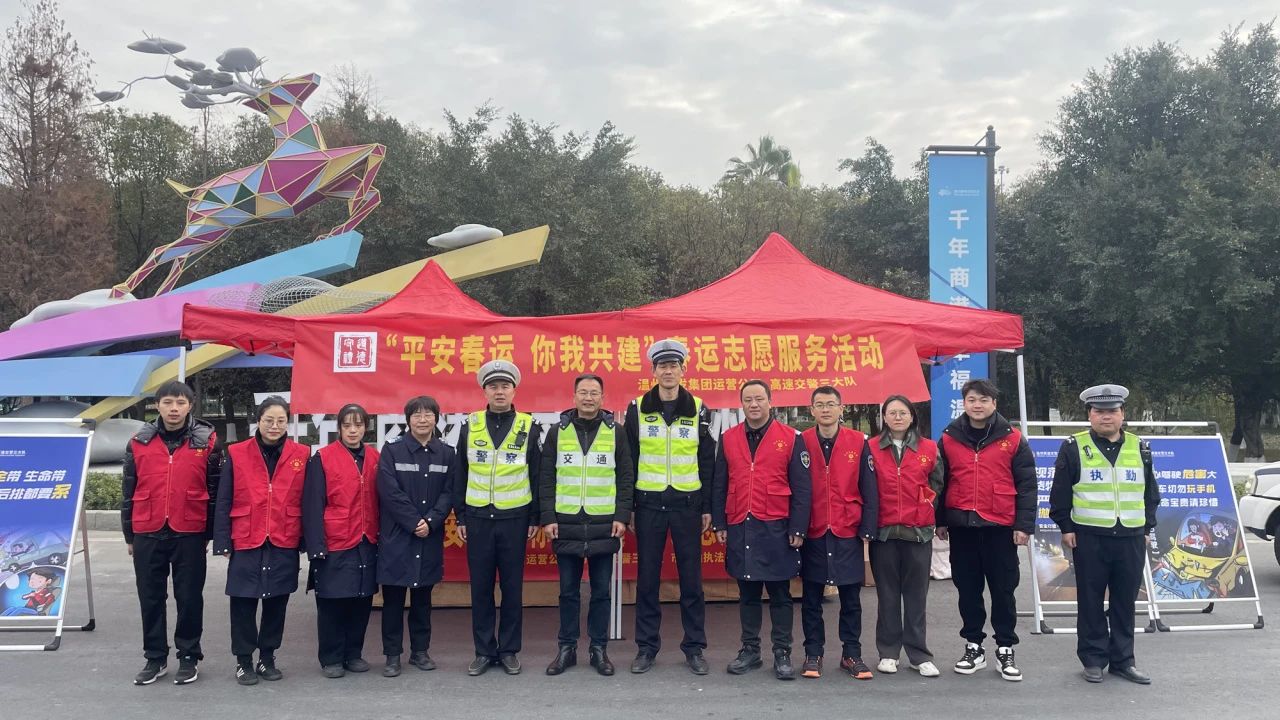 四是情满旅途、温暖护航。联合高速交警支队,开展“平安春运 你我同行——2024温州高速春运启动仪式”,拍摄春运安全行车短视频,制作安全行车提醒文创礼品、新春福袋10000余份,发放《高速公路安全行车指南》宣传资料,加大春运安全行车宣传力度,提高广大群众道路交通安全意识和交通法治观念。后续,市交发集团还将在全线25个收费站设置志愿服务岗亭和便民服务台,提供ETC办理安装、设备激活、故障设备更换等便民服务,并配置姜茶热饮、简易修车工具、充电宝等物资,为司乘人员提供温馨服务。